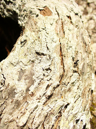 Dans le verger de Boisseau, un poirier sans doute centenaire est devenu avec les ans une gigantesque fourmilière pour fourmis noires. Malgré son tronc évidé, il produit encore !