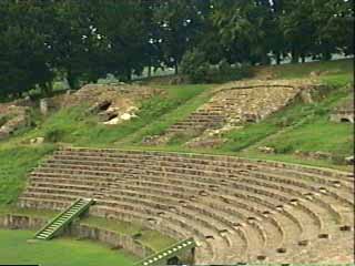 Quatre portes majestueuses s’ouvraient sur la campagne environnante où les riches propriétaires terriens exploitaient de grands domaines.L’eau était acheminée par des aqueducs et la ville possédait tous les attributs dignes d’une cité impériale : un théâtre pouvant contenir 20 000 spectateurs, le plus grand de toute la Gaule, un amphithéâtre, un forum, des temples, des thermes et des demeures somptueuses.