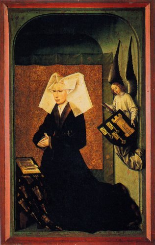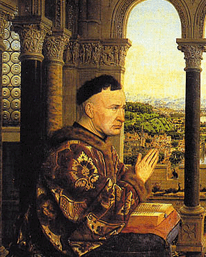 Une dizaine d'années après l'oeuvre de Jan Van Eyck, Nicolas Rolin et sa femme Guigone de Salins posent pour le retable de Rogier van der Weyden destiné à la chapelle de l'Hôtel-Dieu : le Polyptyque du Jugement dernier.