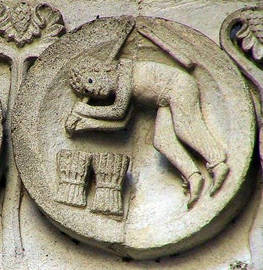 Détails sur la voussure supérieure du tympan (signes astrologiques et mois de l'année) :